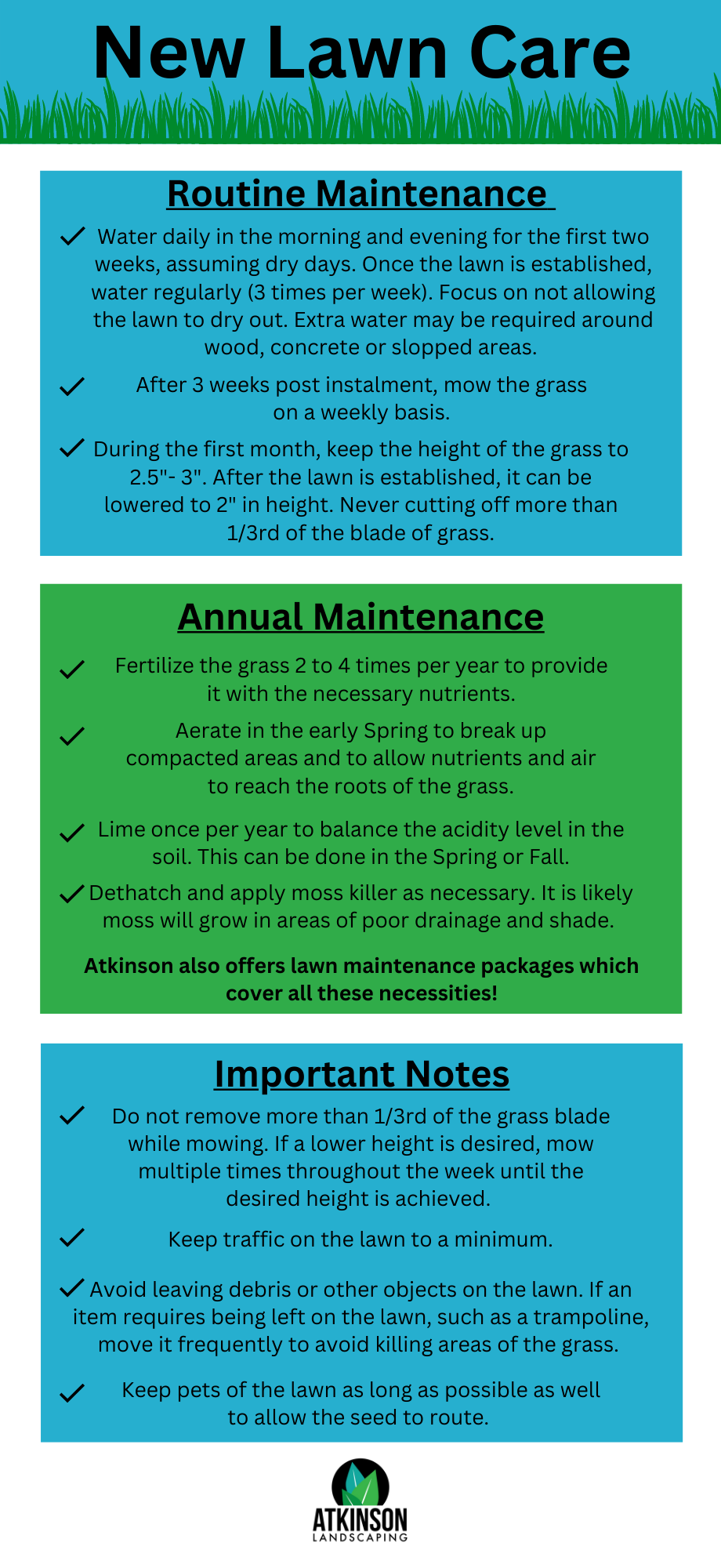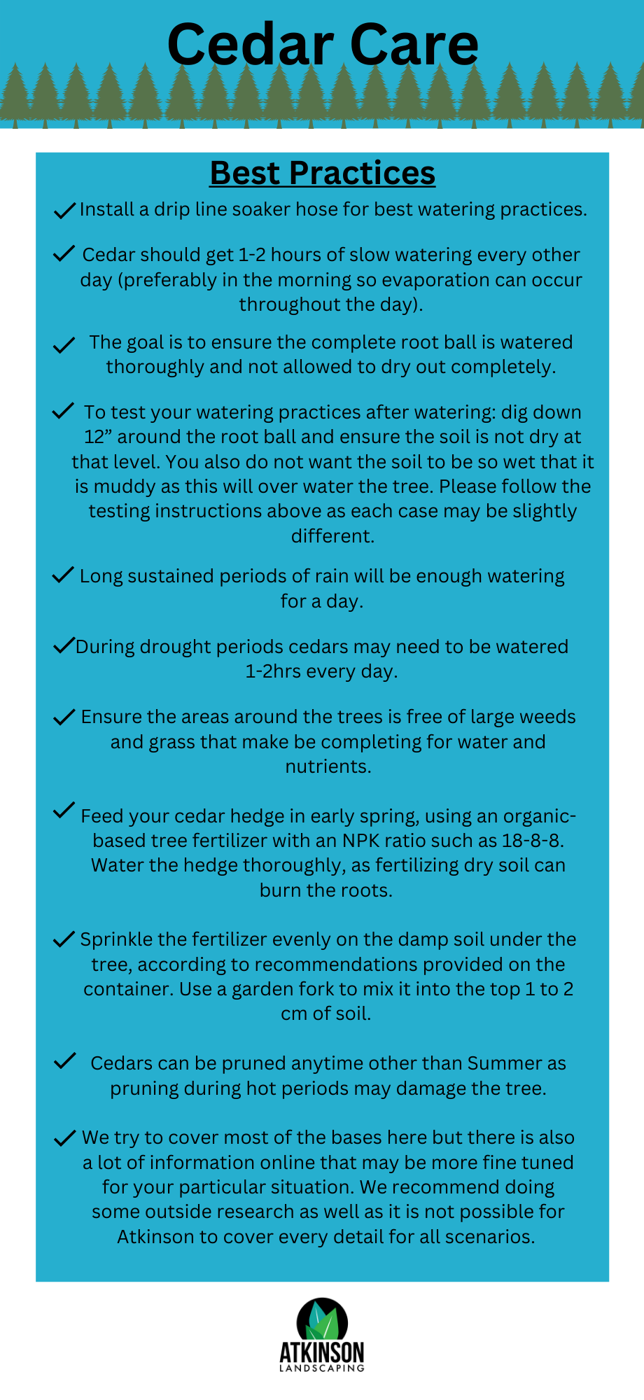 Take a look at these helpful hints on how to care for your new Cedars, Pavers, Synthetic Grass or Sod! Feel free to reach out to us with any additional questions.