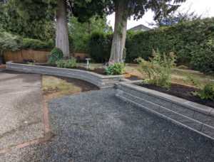 Access – Retaining walls require a 4-6-inch base of crushed gravel plus the wall blocks. Poor access will increase the labour time moving the materials in for the project.