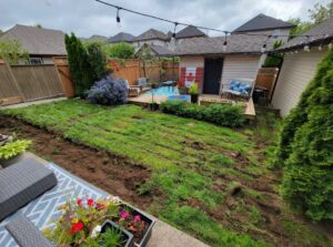 Access – Typically, the existing lawn is scraped out, new topsoil is brought in, and the sod is installed. The more difficult the access the more labour time required.